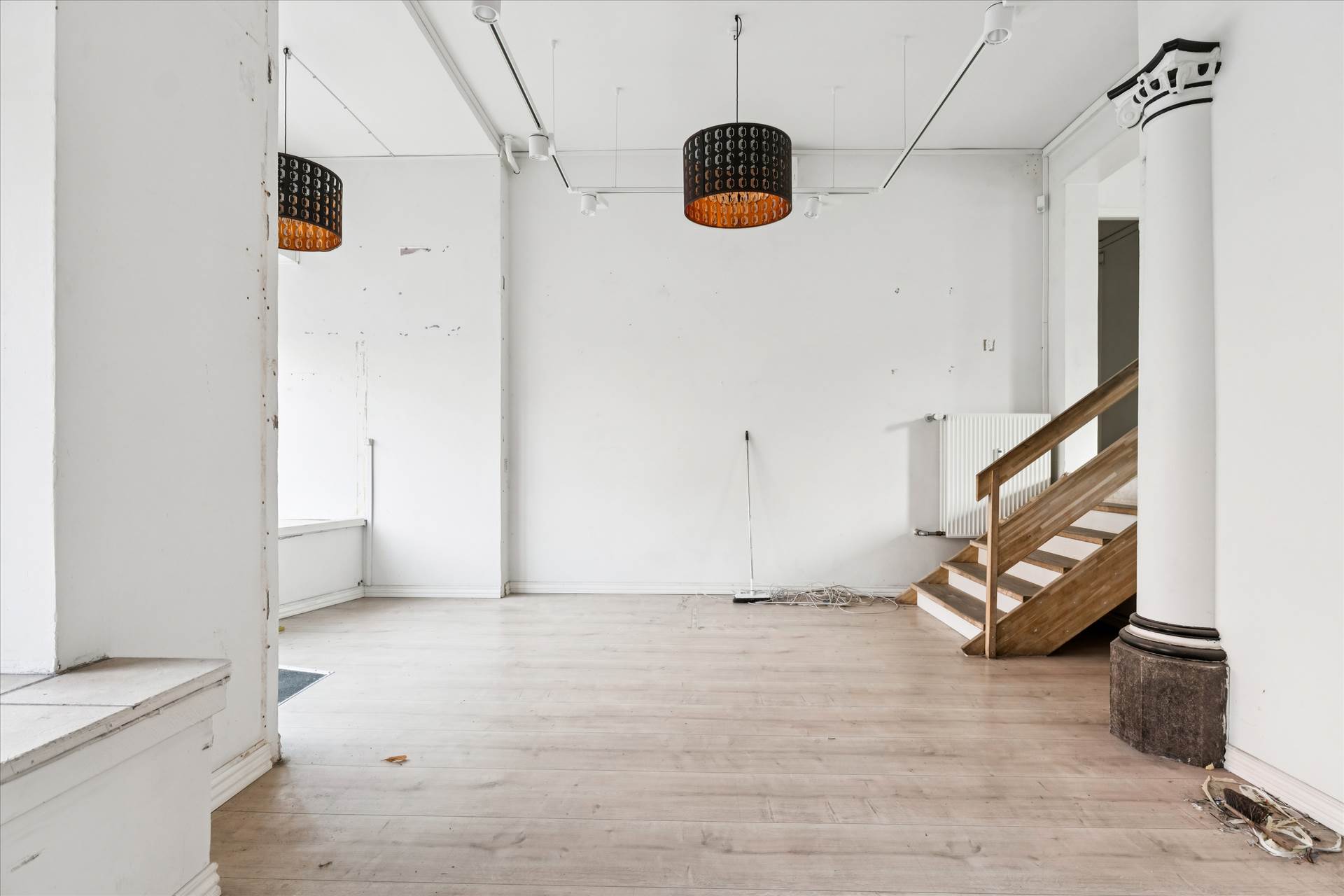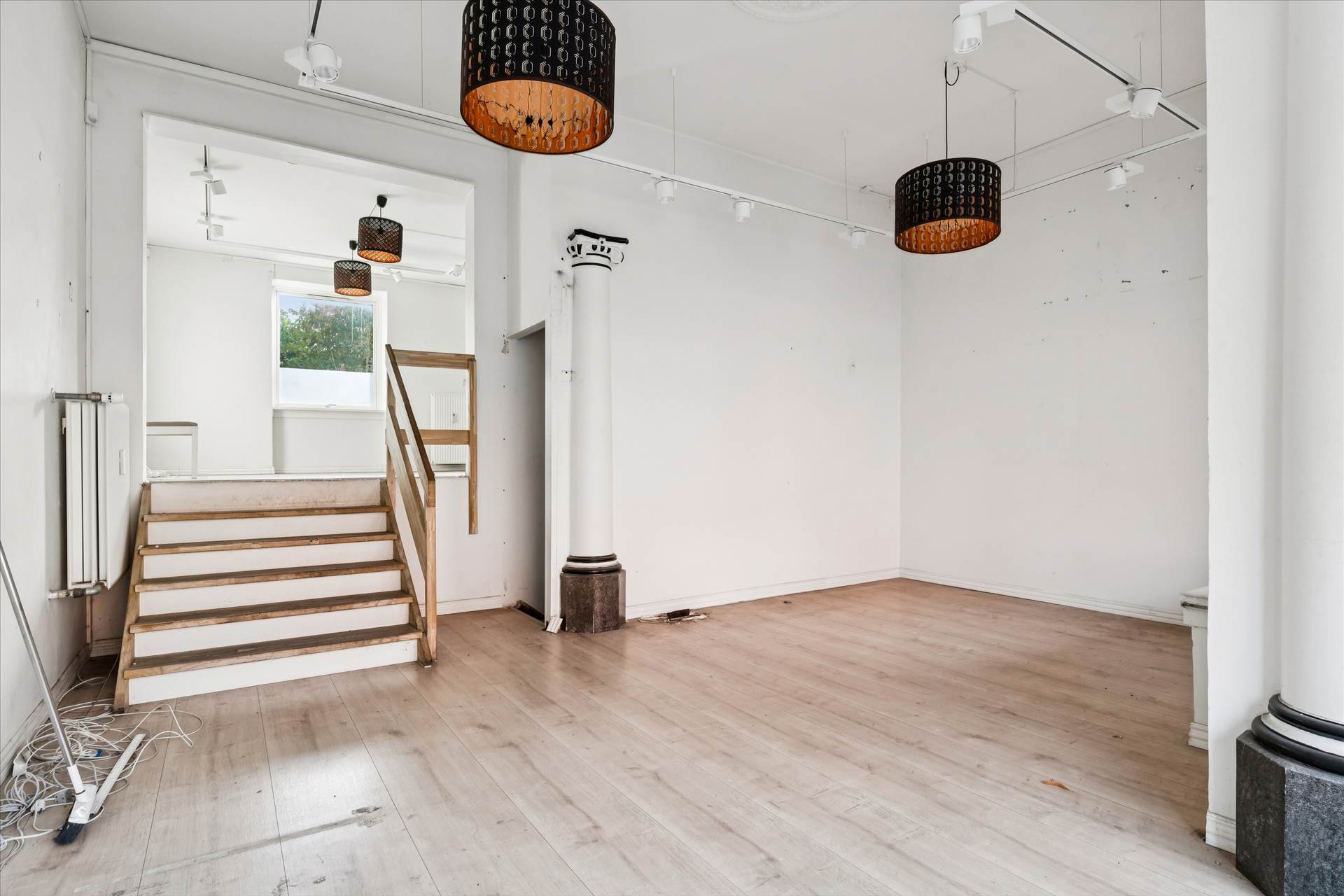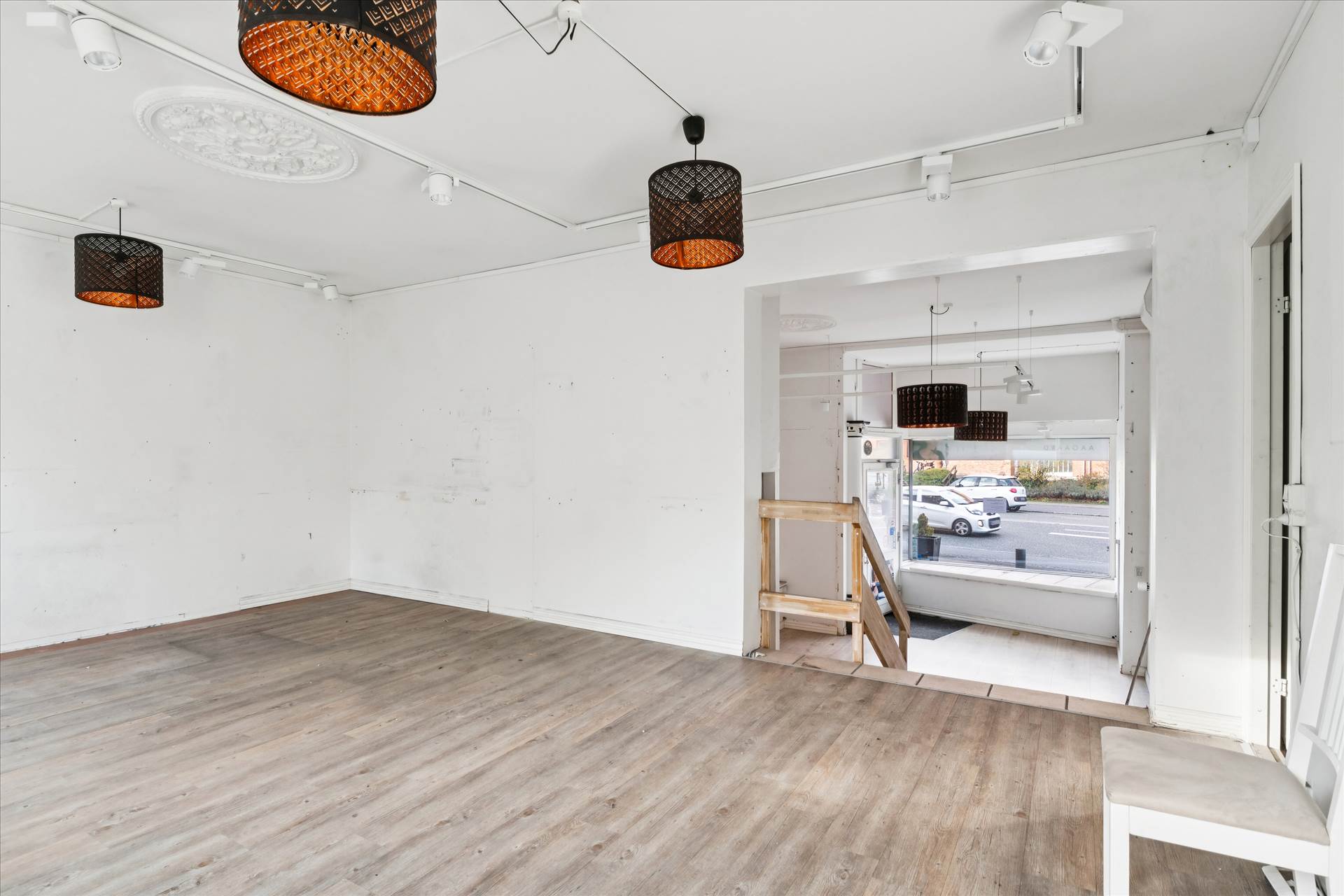 Det primære lokale er regulært og højloftet, hvilket giver en behagelig rumfornemmelse og mange indretningsmuligheder. Fra hovedlokalet er der en trappe op til et forhøjet niveau, som kan anvendes som yderligere salgsareal, behandlingsrum eller kontorafsnit.