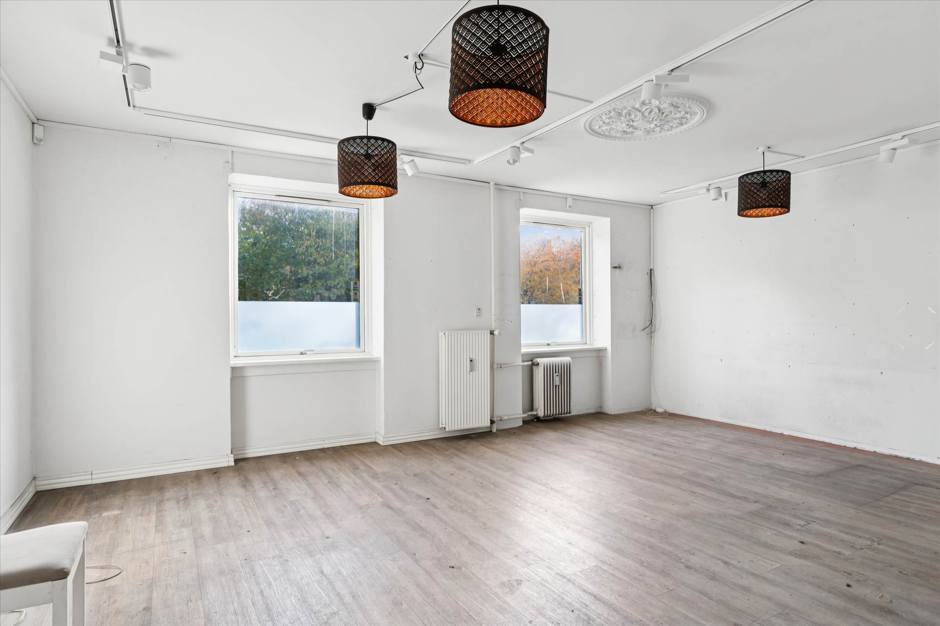 Et lyst, højloftet og fleksibelt erhvervslejemål med god synlighed, anvendelig kælder og mulighed for ekstra salgs- eller behandlingsareal – oplagt til klinik, butik eller showroom i det attraktive Bagsværd.