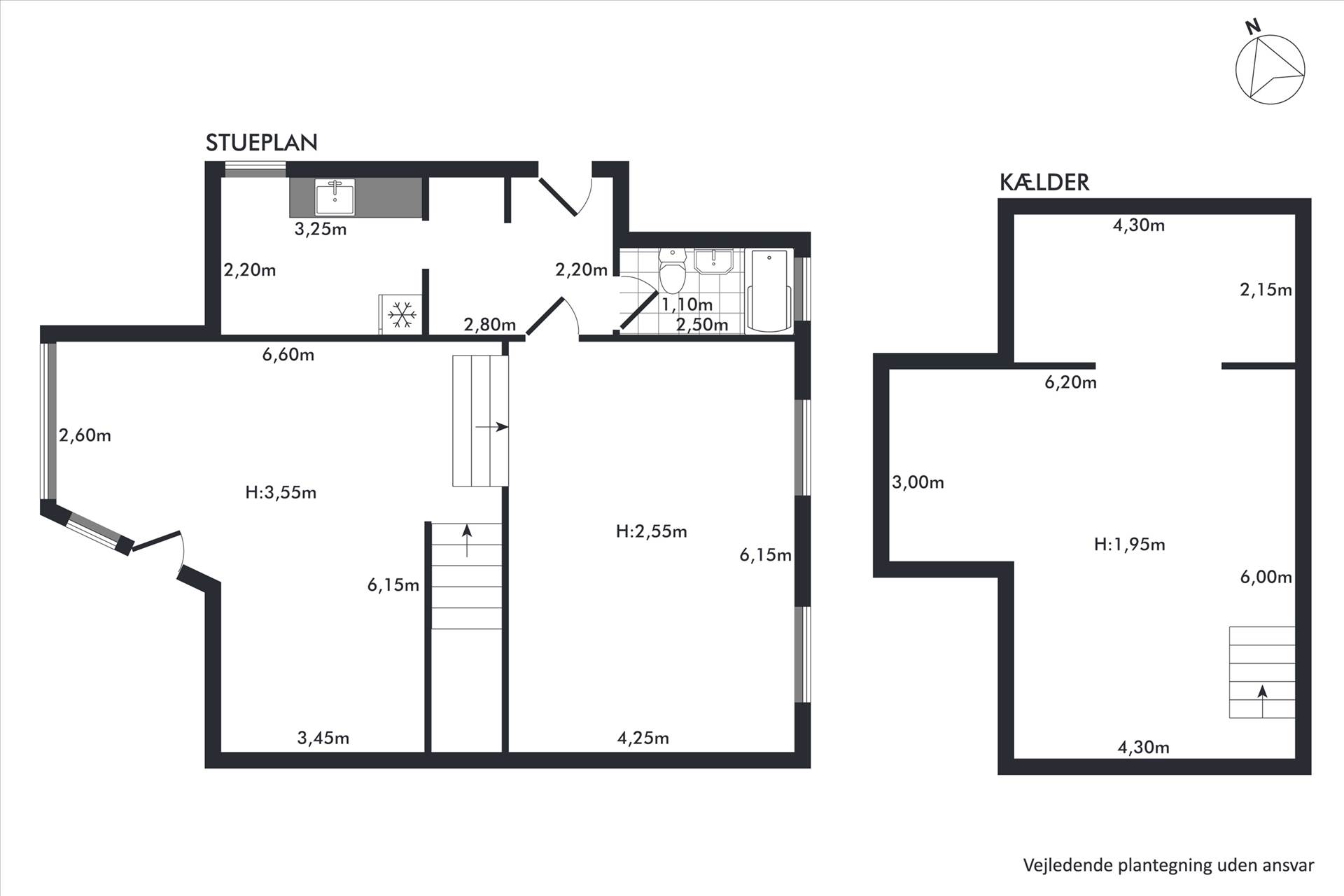 Tekøkken, toilet og en rummelig kælder, som er ideel til lager, arkiv eller personalefaciliteter.