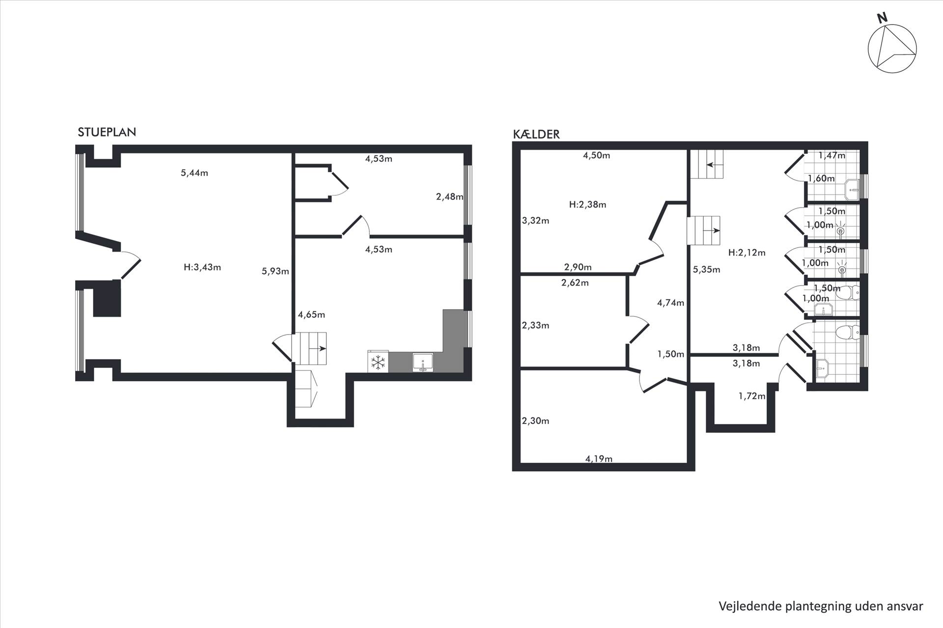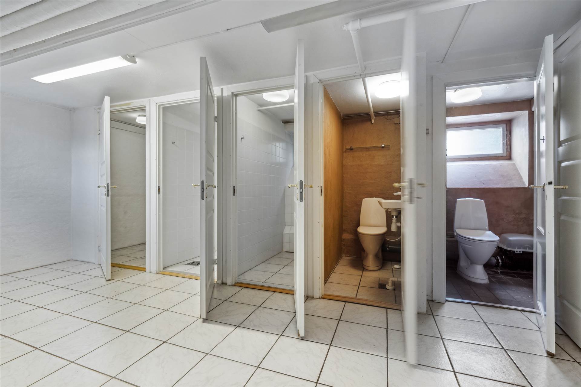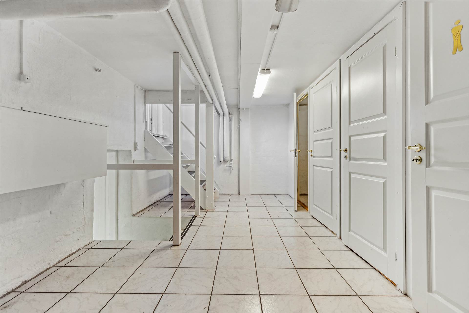Lejemålet består af 4 x ½ plan á ca. 35 m² hver. Indgang direkte fra gaden til ét stort og meget højloftet rum (3,60 meter til loft), hvorfra man kan gå op til det høje stueplan, der er oplagt til kontor (eller måske yderligere salgsareal). Endvidere nedgang til høj kælder med lille thekøkken, toilet samt plads til lager. Herfra nedgang til nederste kælder, der er oplagt til lager.