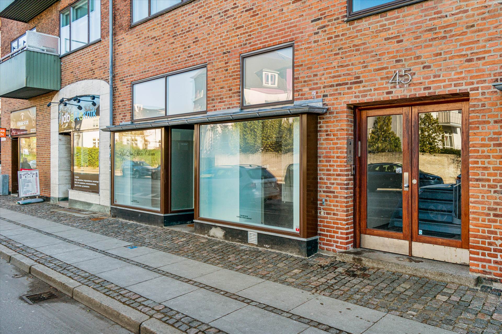 God facade med mulighed for skiltning. I ejendommen ligger der også: frisør, elektriker, fodterapi, massage, møbelpolstrer og en tandklinik.