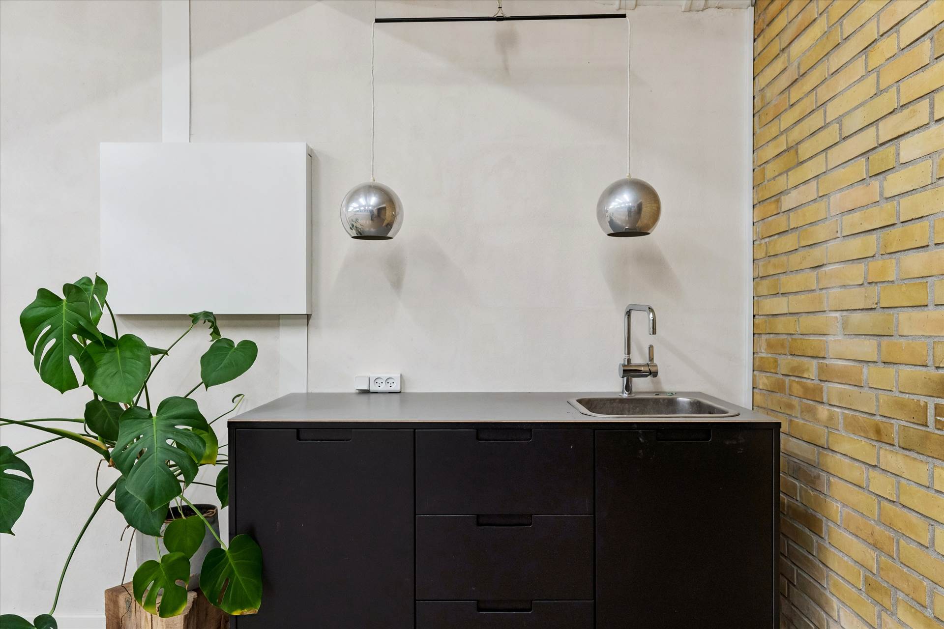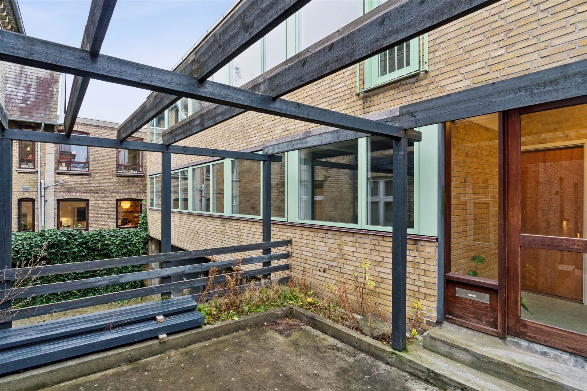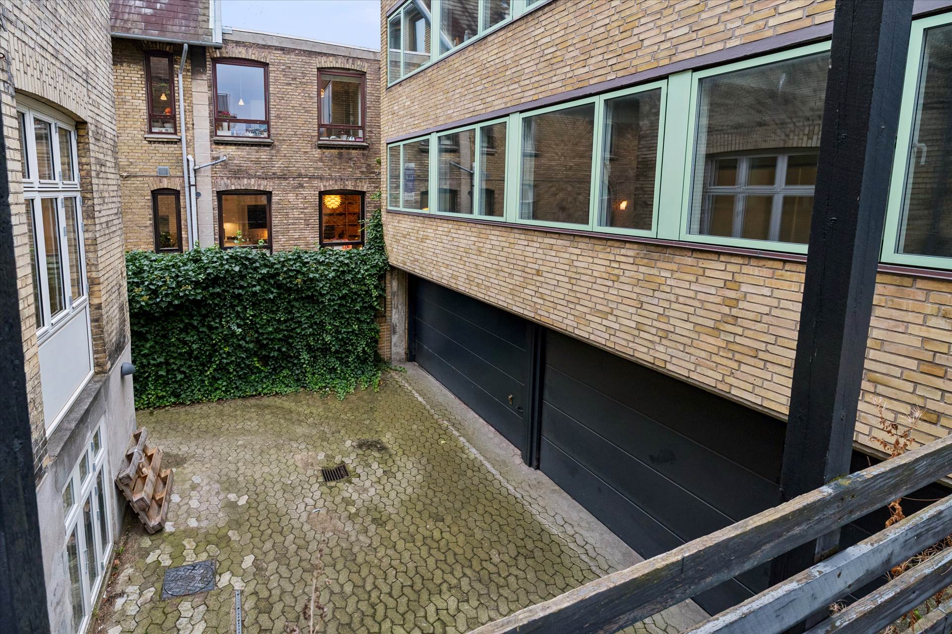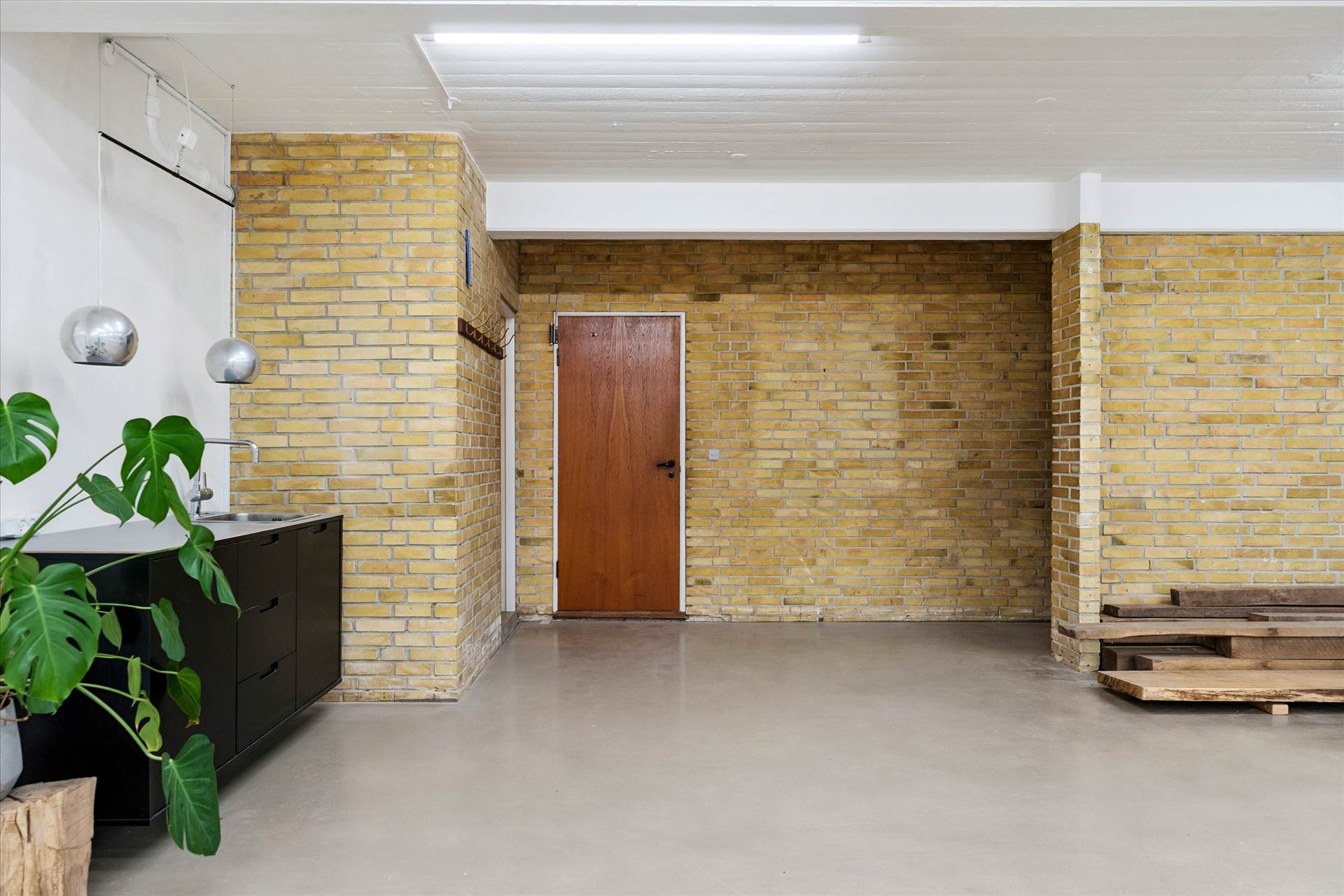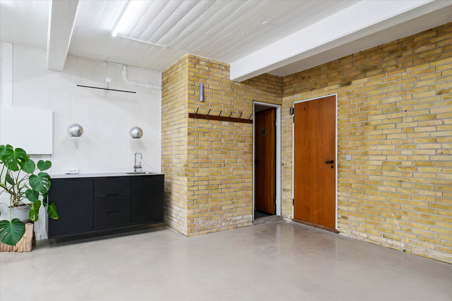Der er egen indgang via en afskærmet terrasse, som giver en privat og rolig adgang til lejemålet. Den æstetiske kombination af klassiske mursten, industrielle detaljer og moderne finish skaber en særlig atmosfære, perfekt til både kreative og professionelle aktiviteter.