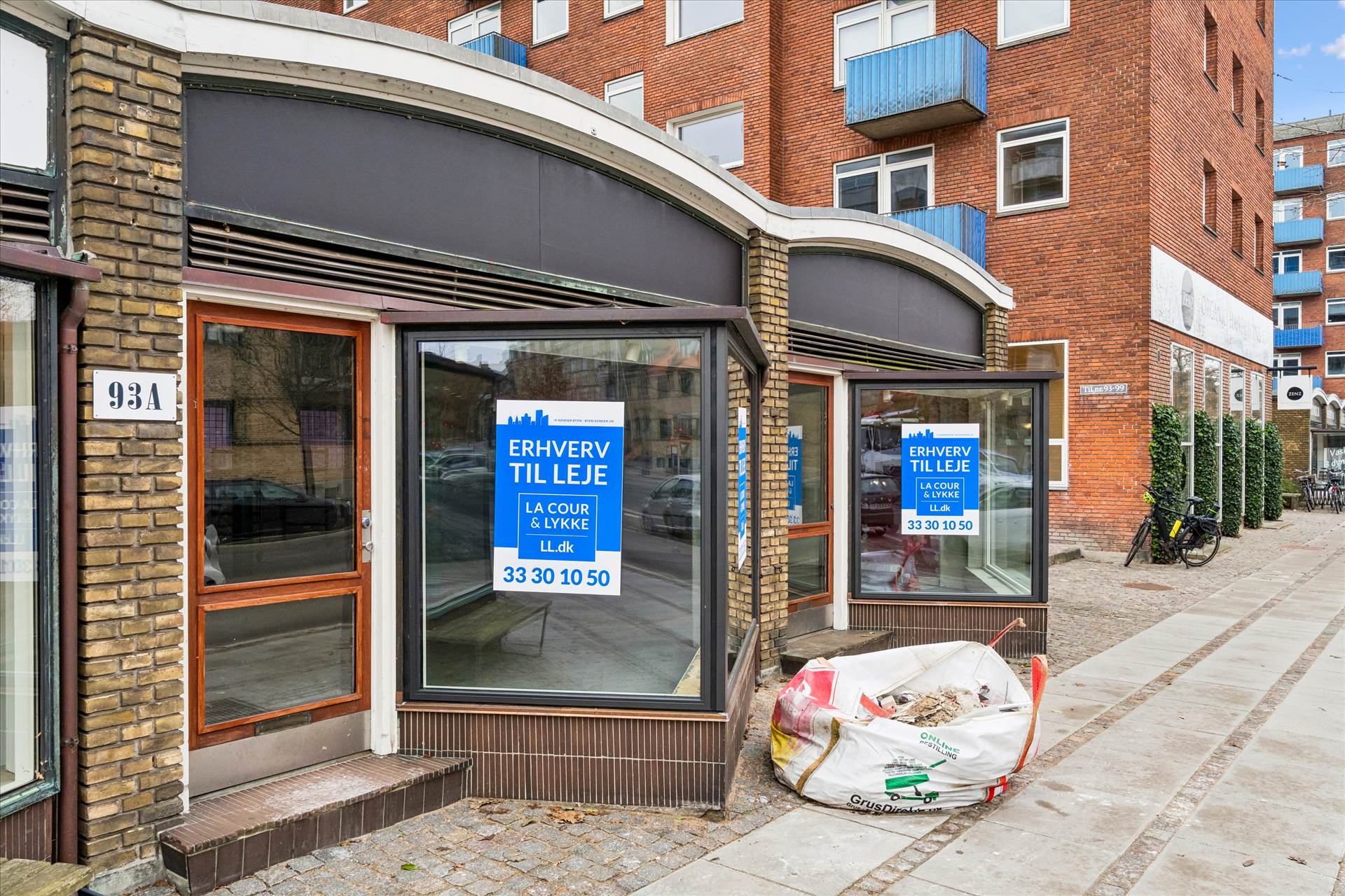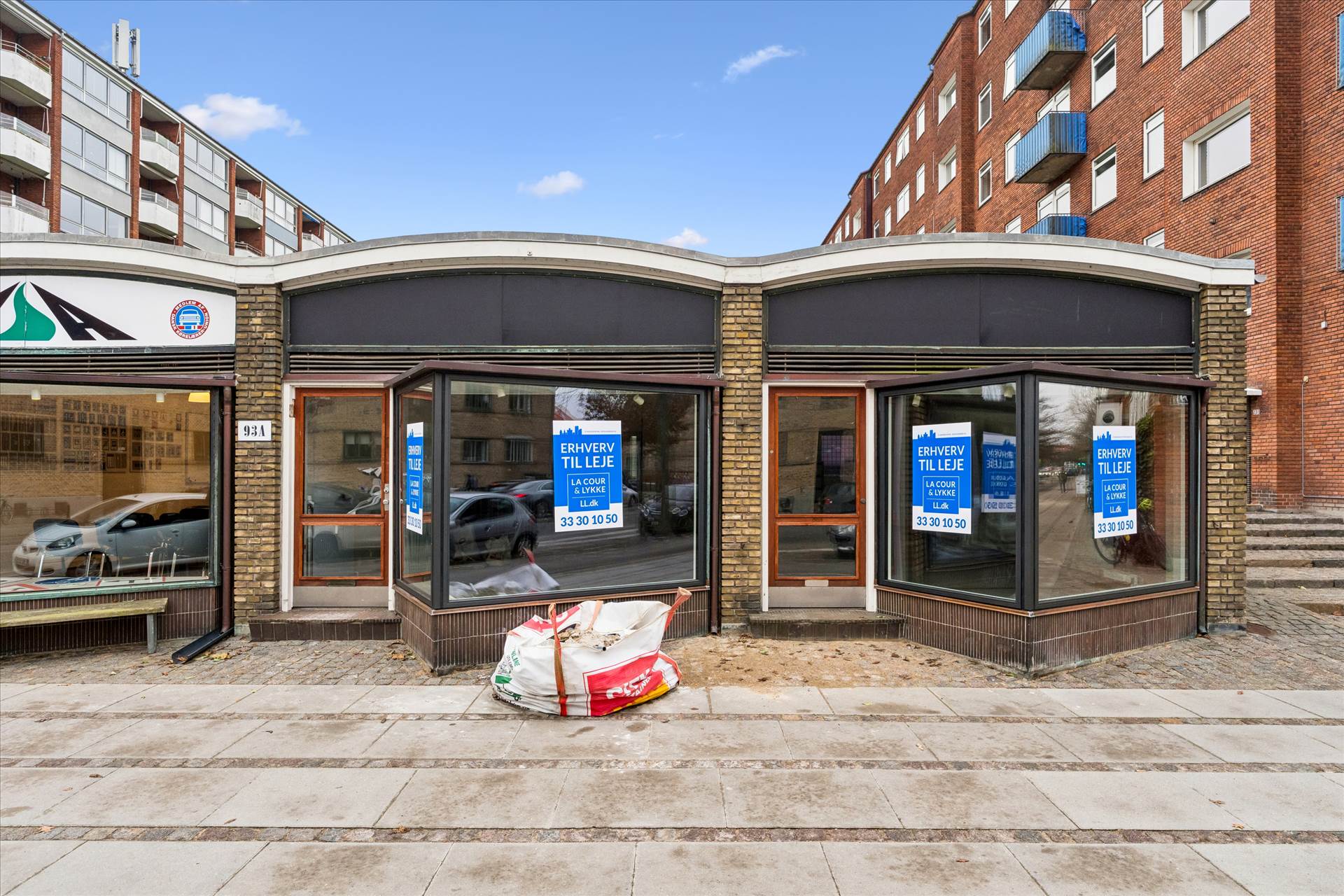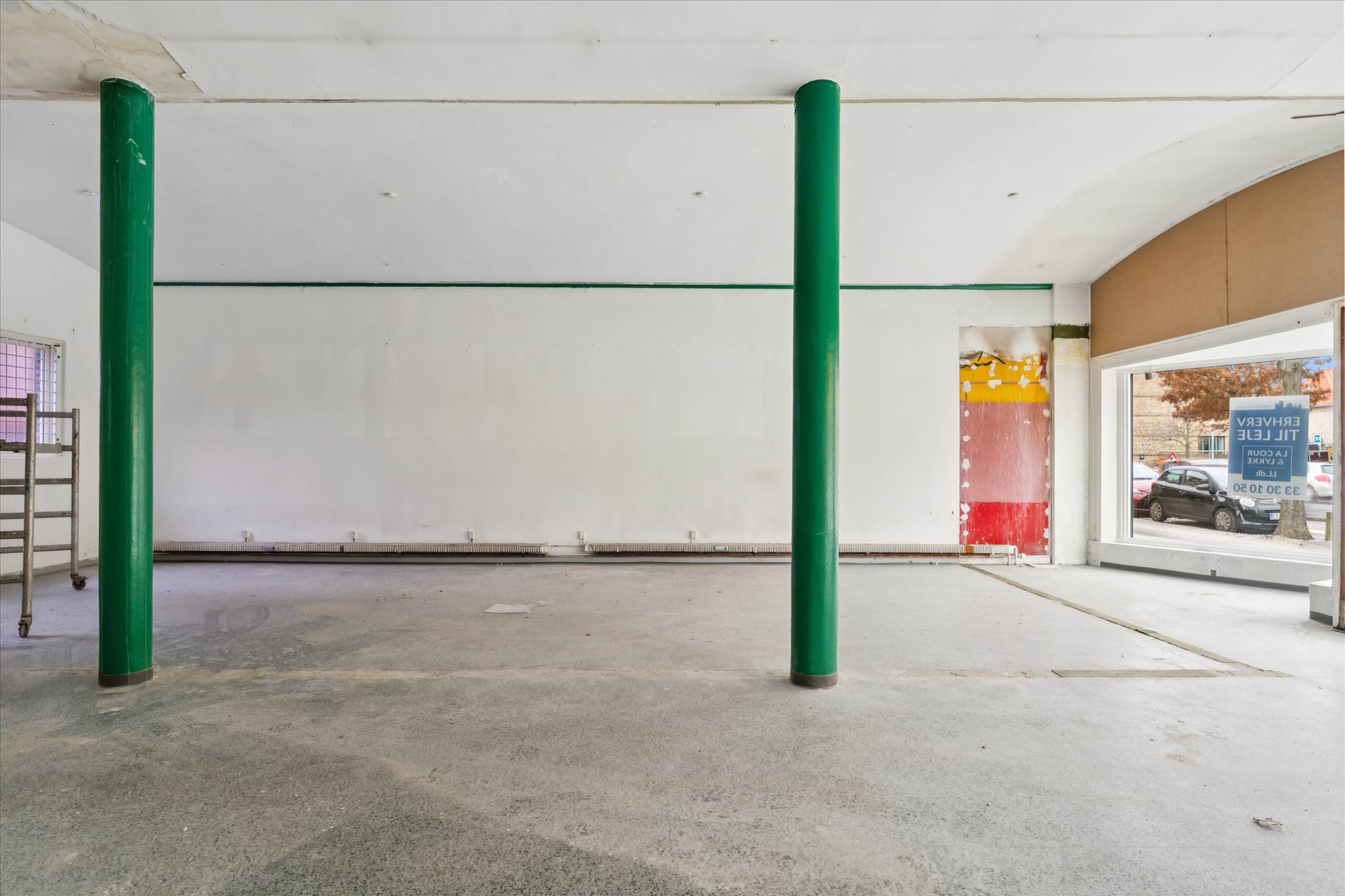 Lejemålet består af 104 m² i stueplan og 77 m² i kælder, begge med meget god loftshøjde, hvilket giver en usædvanlig rummelig og lys fornemmelse. De markante vinduespartier ud mod Godthåbsvej sikrer høj synlighed og stærk eksponering.