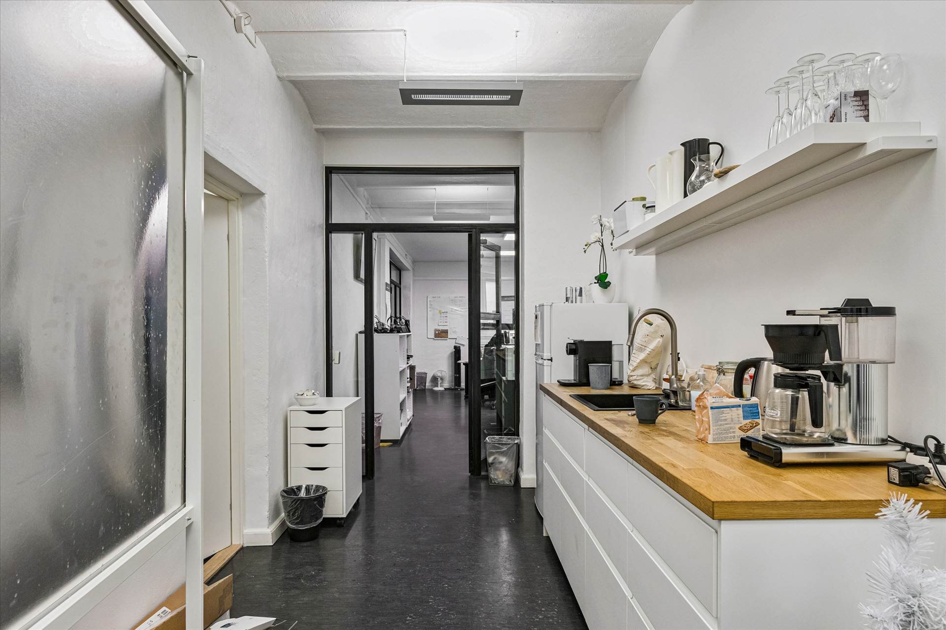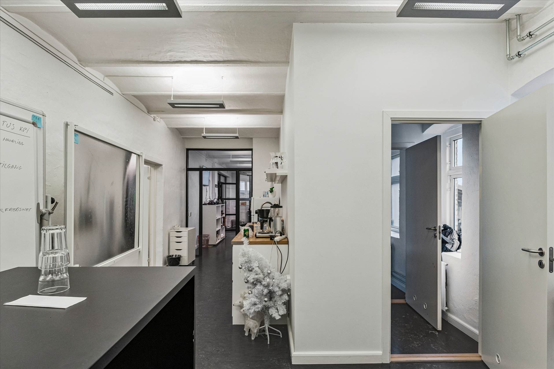 Der er etableret tekøkken med god bord- og opbevaringsplads samt separat toilet. Loftshøjden er ca. 2,85 m, hvilket bidrager til en behagelig rumfornemmelse. Lokalerne har store vinduespartier, som giver et godt lysindfald i hele lejemålet.