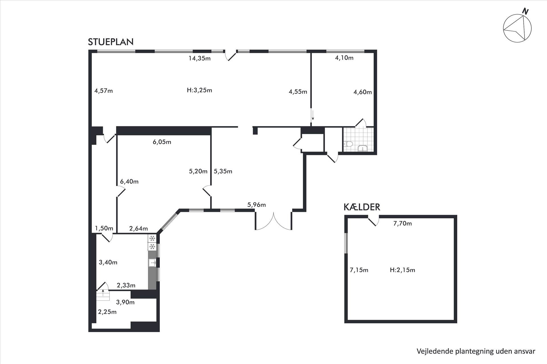 • Kælder med hylder, ventilation og god lofthøjde ift. kælderstandard