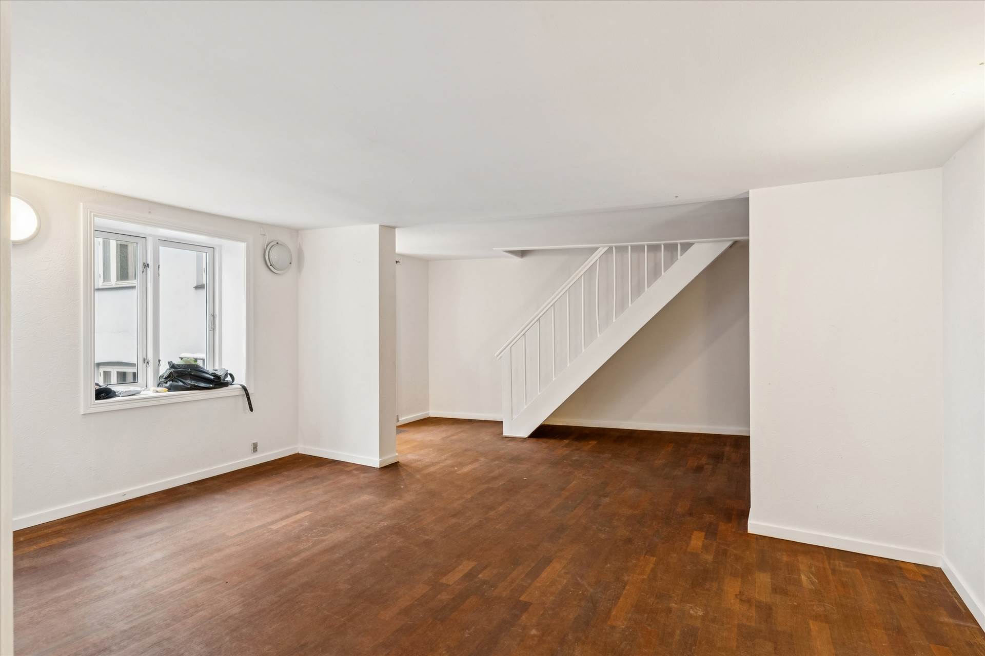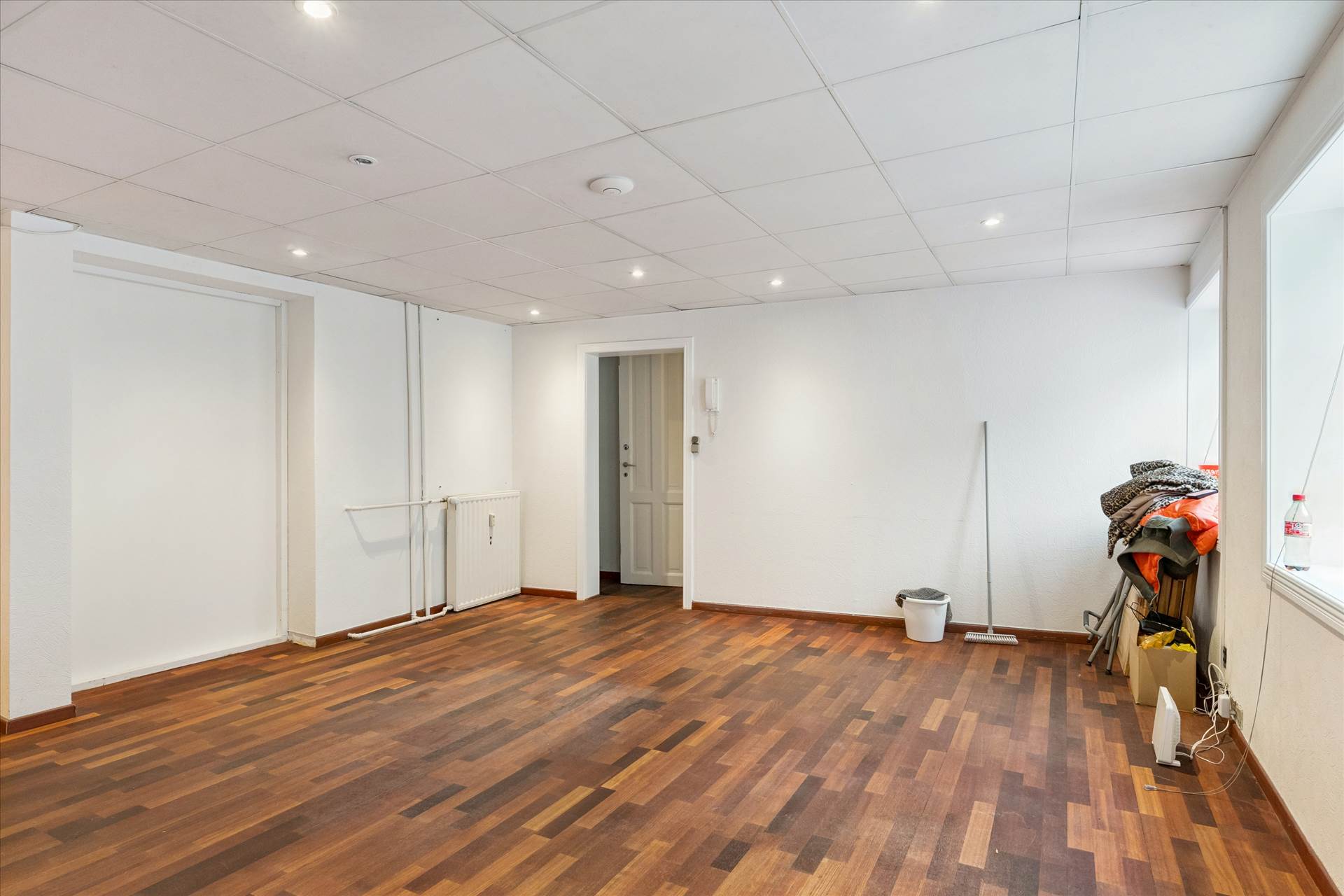 Overtages med nybehandlede trægulve samt nymalede vægge og lofter.