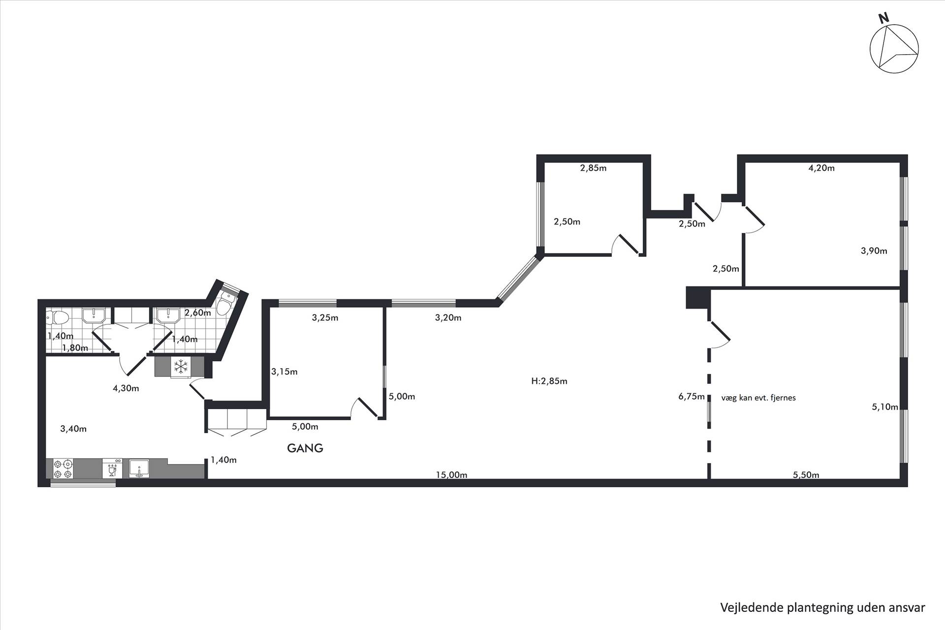 Flot loftshøjde på 2,85 m i hele lejemålet.