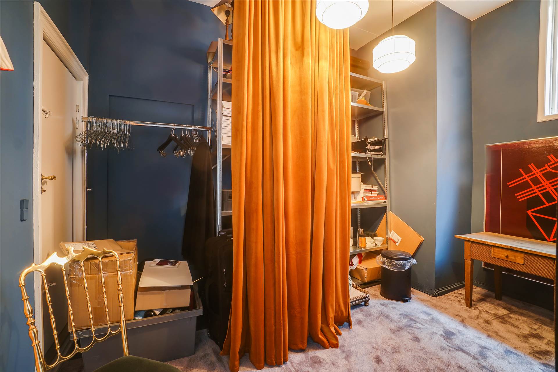 Via indgang fra hovedtrappen, kommer man ind i en lille entre hvor toilettet ligger i forbindelse med. Derefter videre ind i et højloftet og lyst kontor med ca. 3,5 meter til loftet. Der er vinduer ud mod den hyggelige gård. Bagerst er der et mindre kontor/mødelokale/lager med vindue samt udgang til bagtrappe. Intet thekøkken.