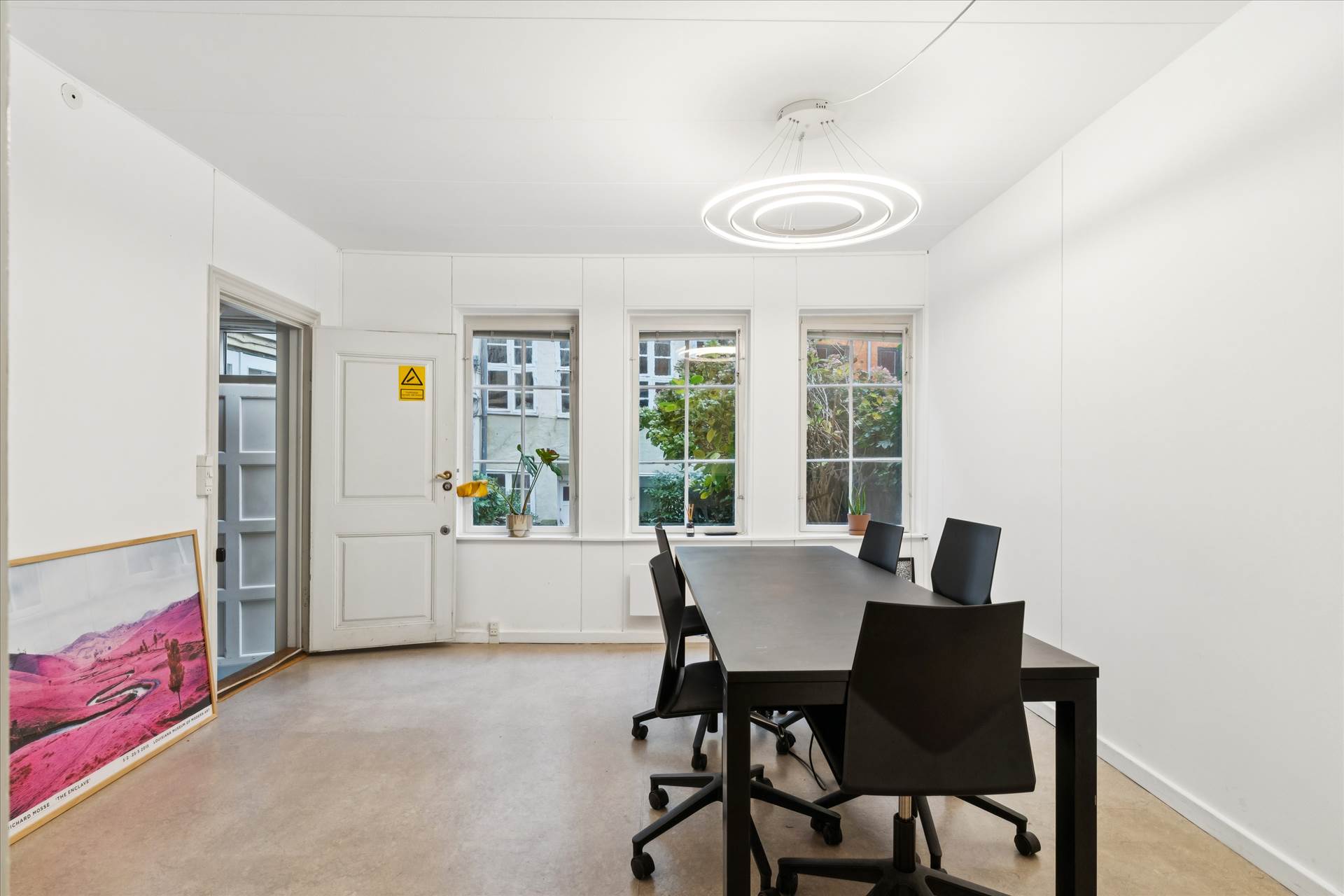 Dette 91 m² kontorlejemål ligger i rolige og stemningsfulde omgivelser i et charmerende baghus, få minutters gang fra Nørreport Station og Metro.