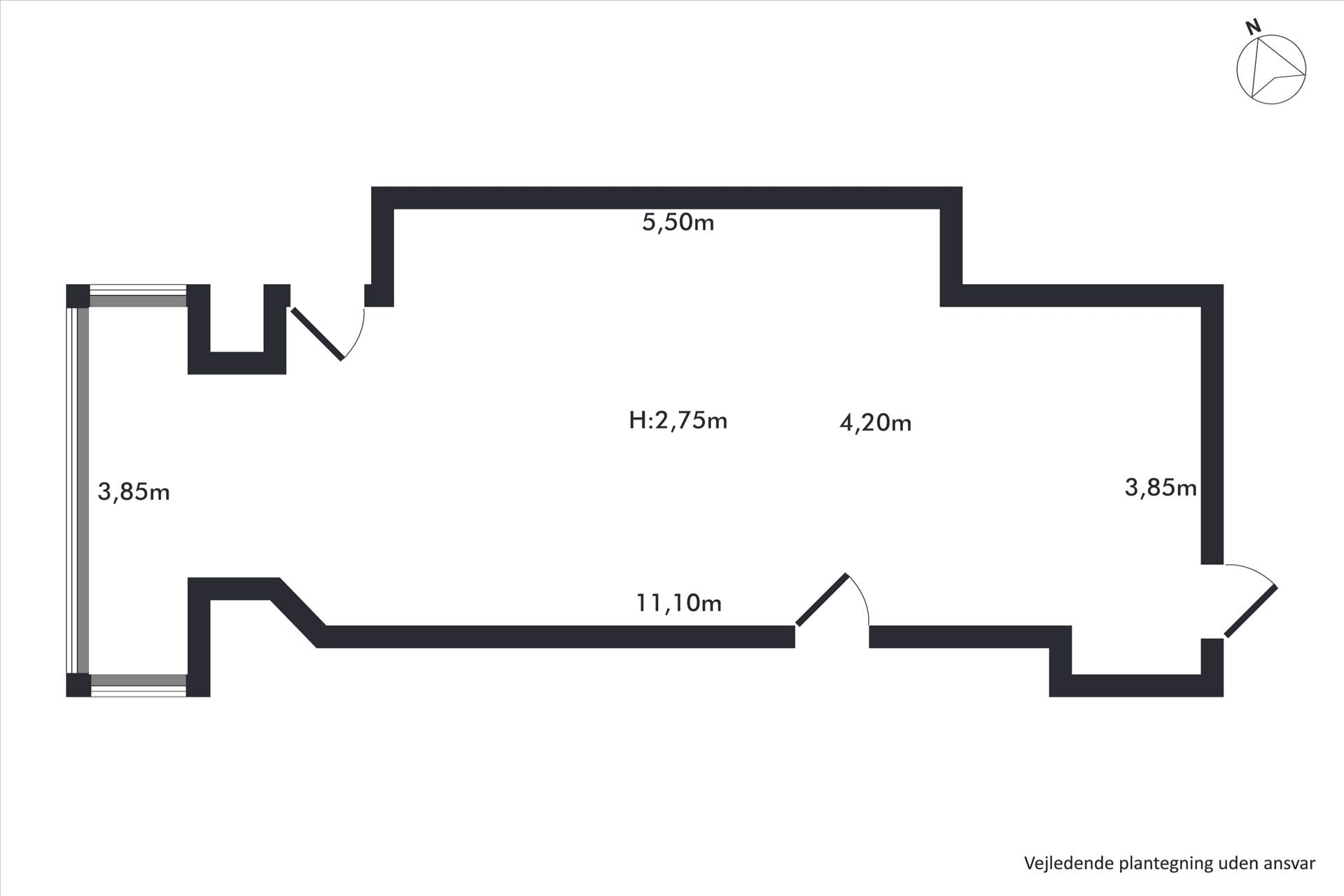 Har de sidste mange år været solcenter. Og er p.t. indrettet med flere mindre rum. Disse fjernes, så der kommer ét stort og meget regulært rum. Toilet i gården.
