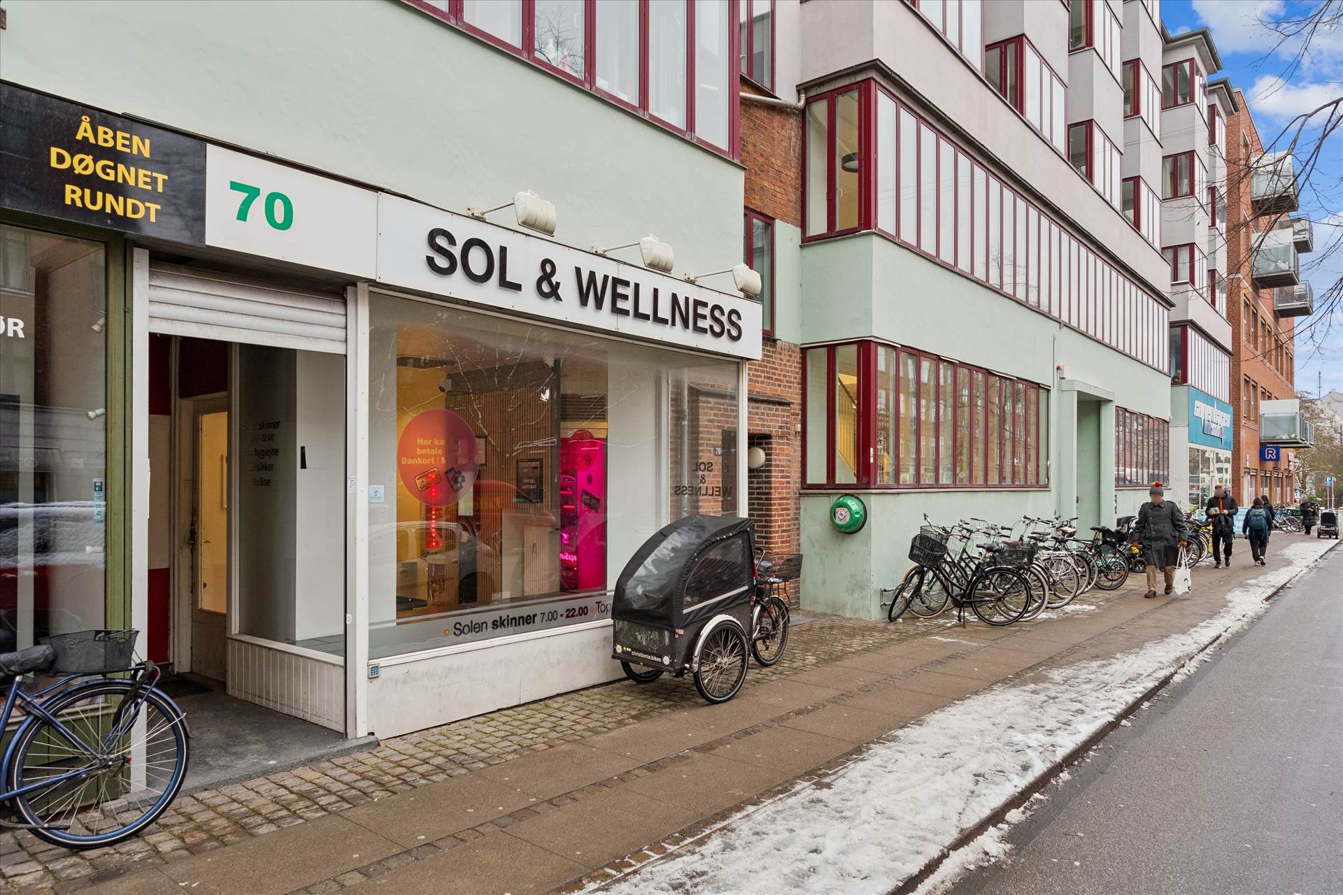 Øvrige lejere i ejendommen er frisør, Mokkariet, Copenhagen Bikeshop m.v. Genbo til Puregym.