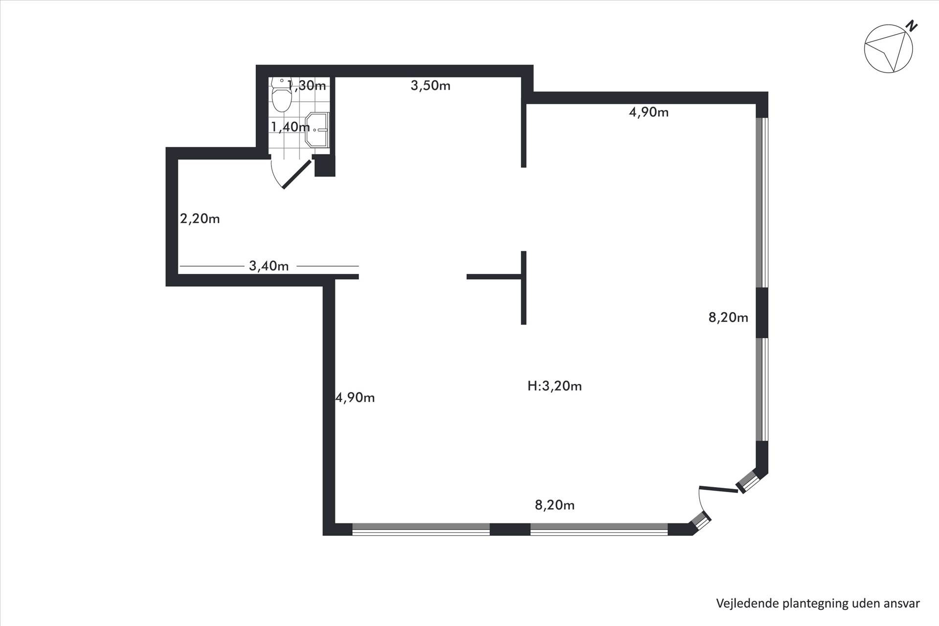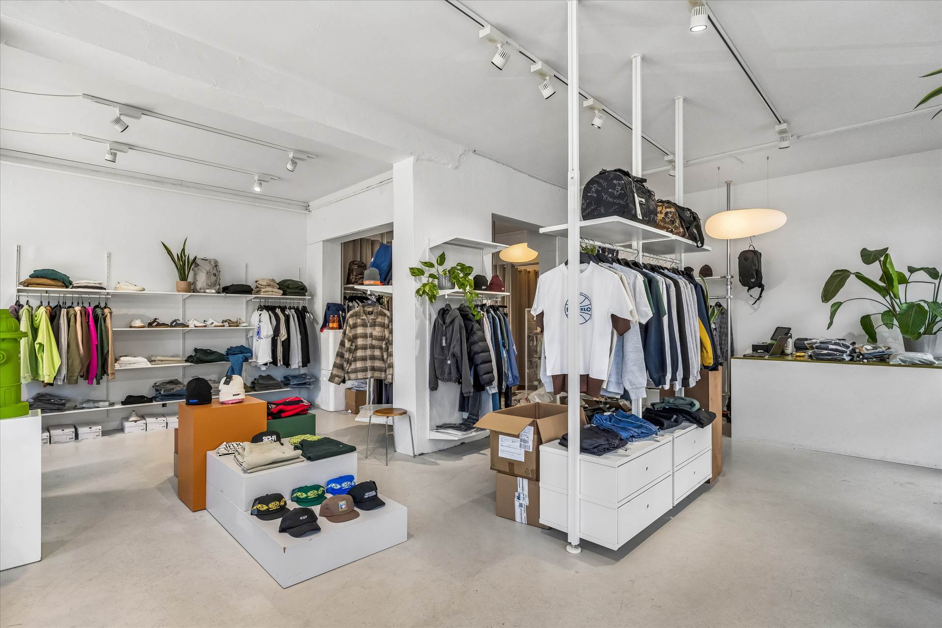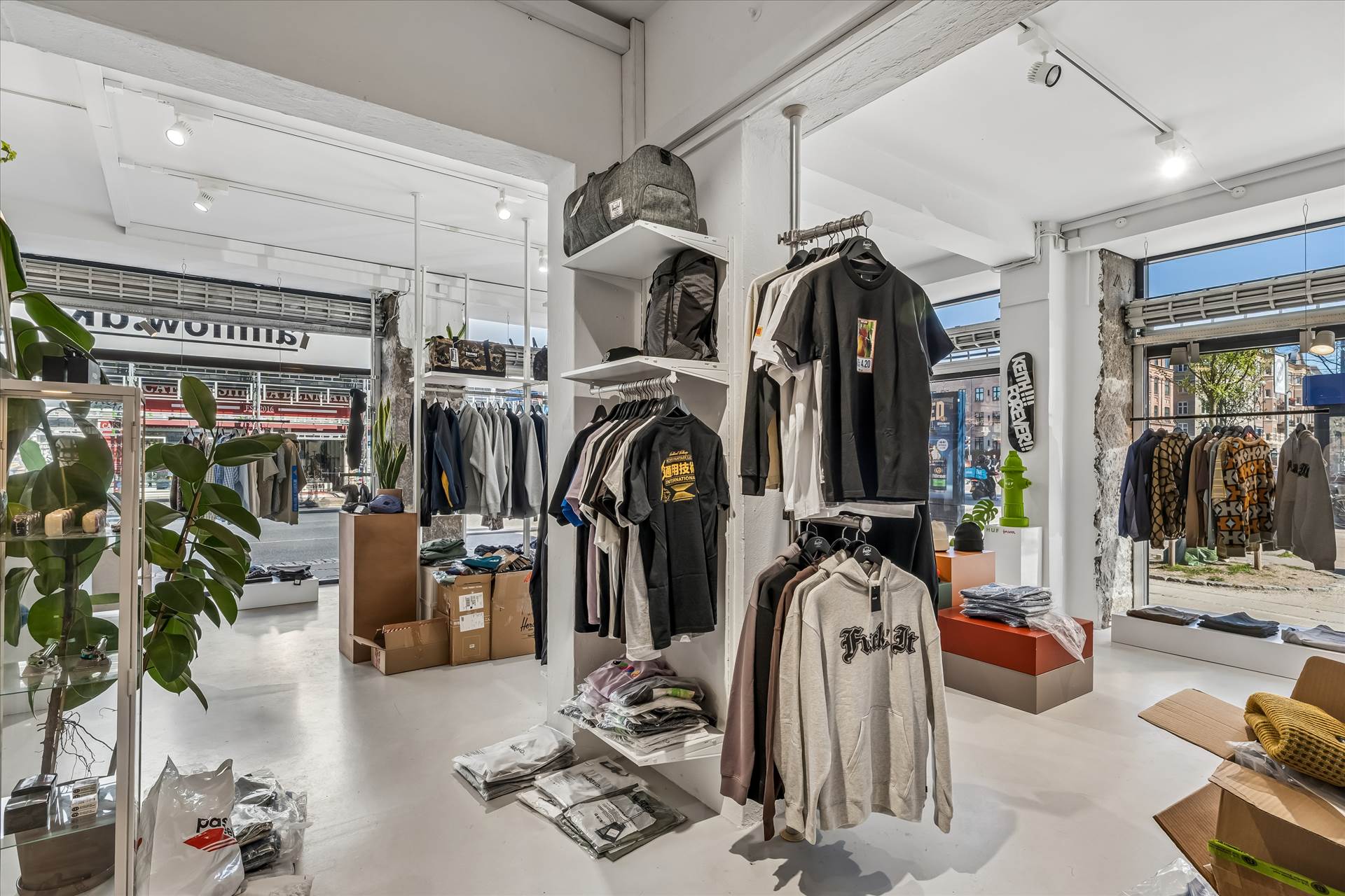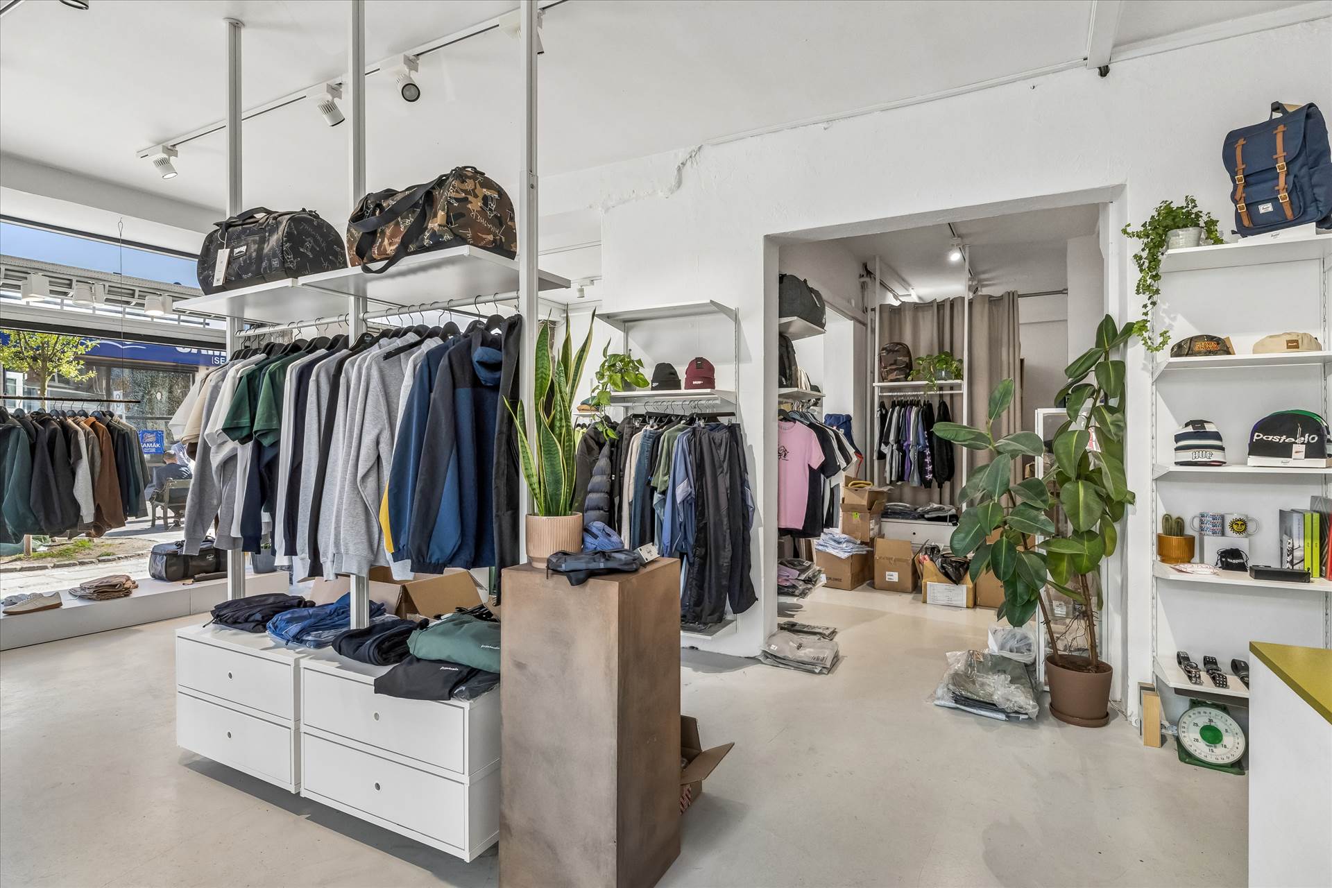 Lejemålet udgør i alt ca. 150 m², fordelt på 90 m² i stueplan samt 60 m² kælder med direkte intern adgang fra butikken. Stueplan fremstår lyst og indbydende med en loftshøjde på ca. 3,2 meter, hvilket bidrager til en rummelig og moderne butiksoplevelse. Indretningen er fleksibel og rummer et åbent salgsareal med gode indretningsmuligheder, suppleret af baglokale, prøverum og toilet. Kælderen fremstår anvendelig og egner sig oplagt til lager, showroom eller personalefaciliteter, hvilket giver en effektiv opdeling mellem kundevendte funktioner og drift.