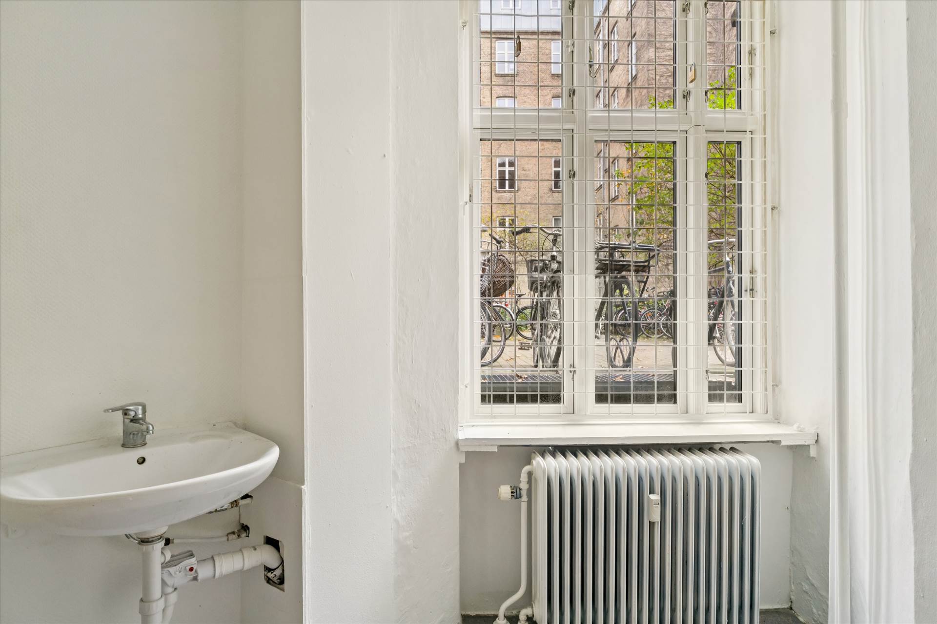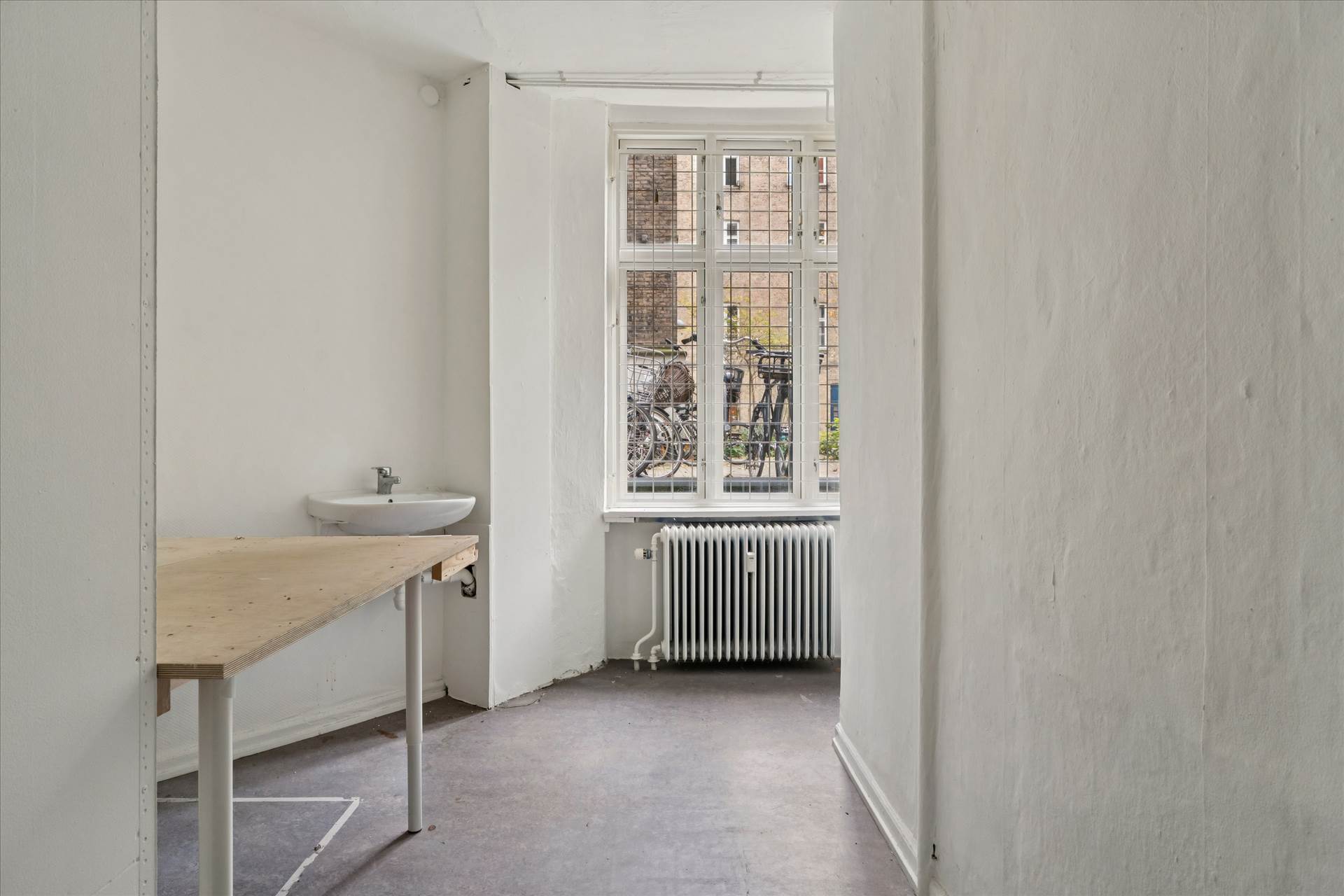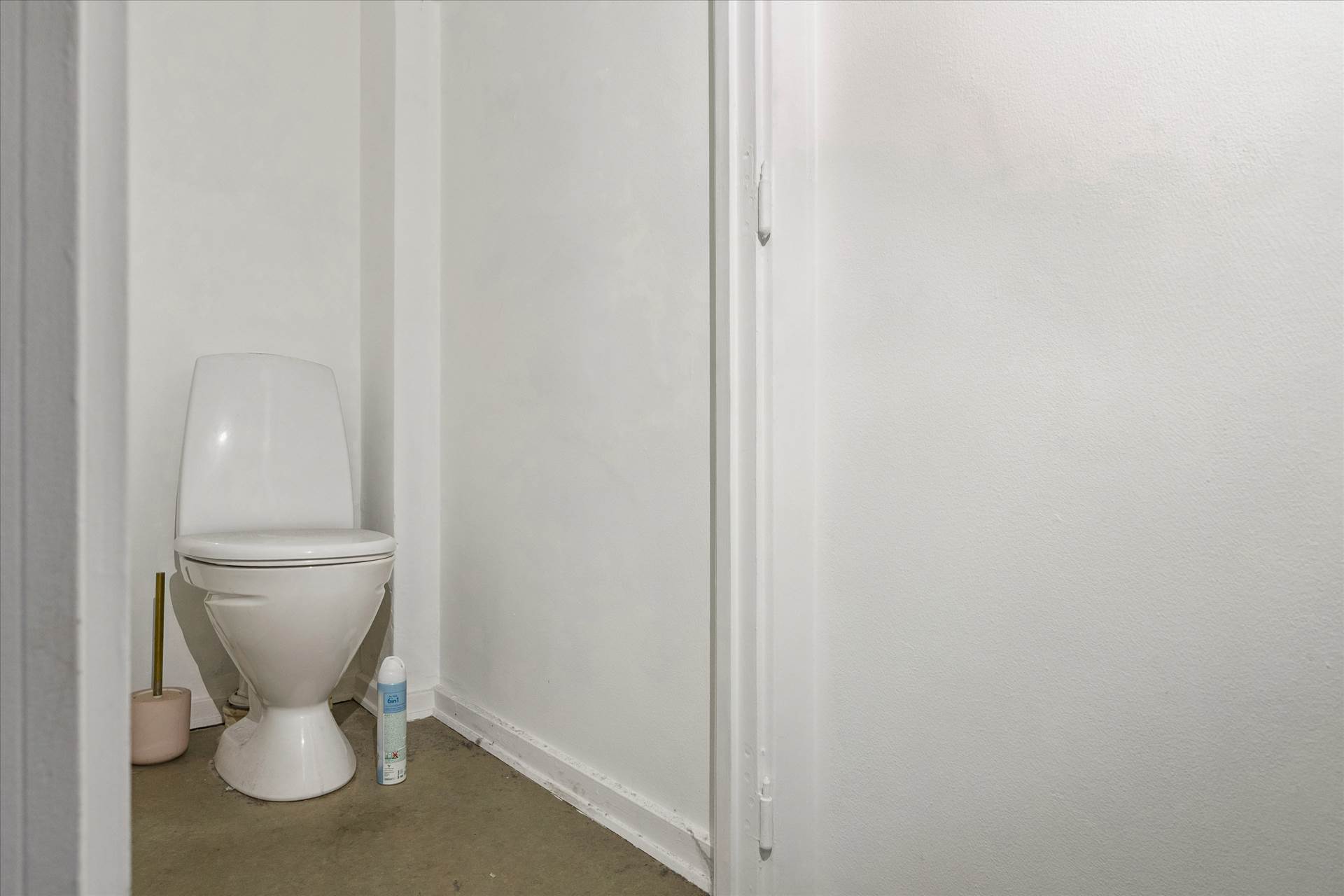 Materialevalget er indbydende med lyse vægge og grå gulve, der giver et moderne og velholdt udtryk gennem hele lejemålet.