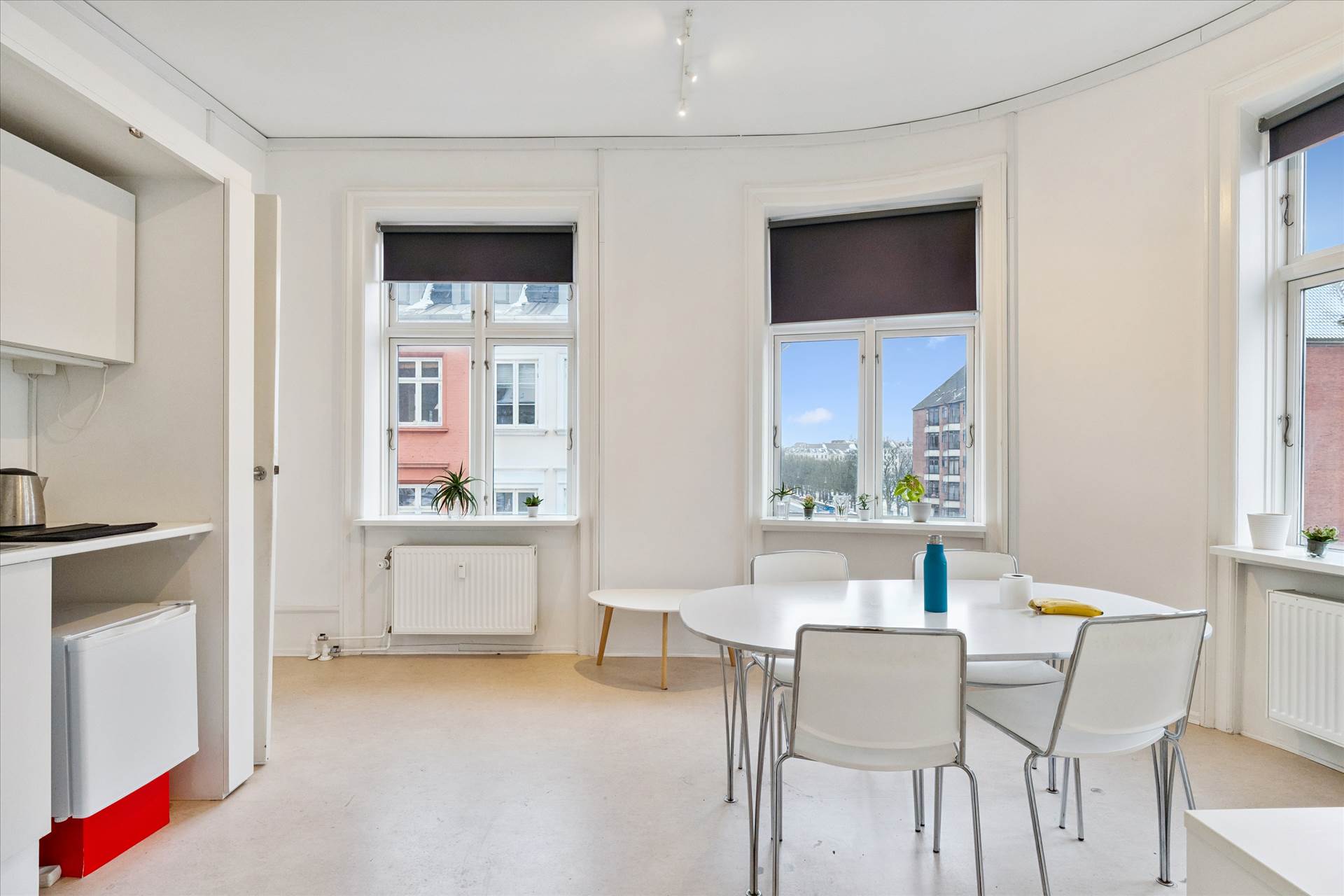 Lejemålet består af flere regulære og anvendelige rum, som egner sig ideelt til kontorarbejdspladser, møde-/projektrum samt fællesfunktioner. Den gode loftshøjde og de store vinduespartier giver et flot lysindfald og en behagelig arbejdsatmosfære. Lejemålet overtages af lejer nymalet og med nyslebne trægulve.
