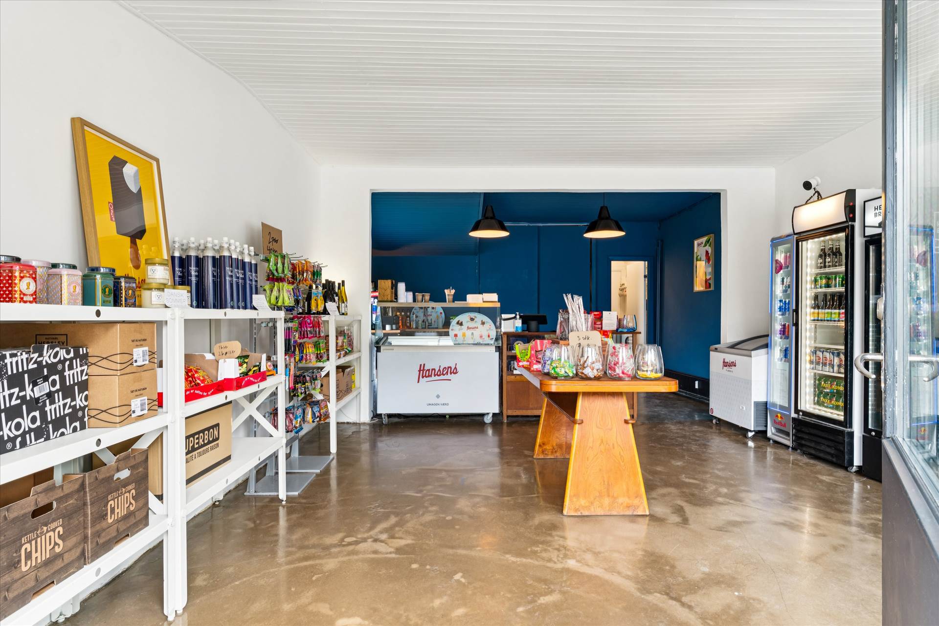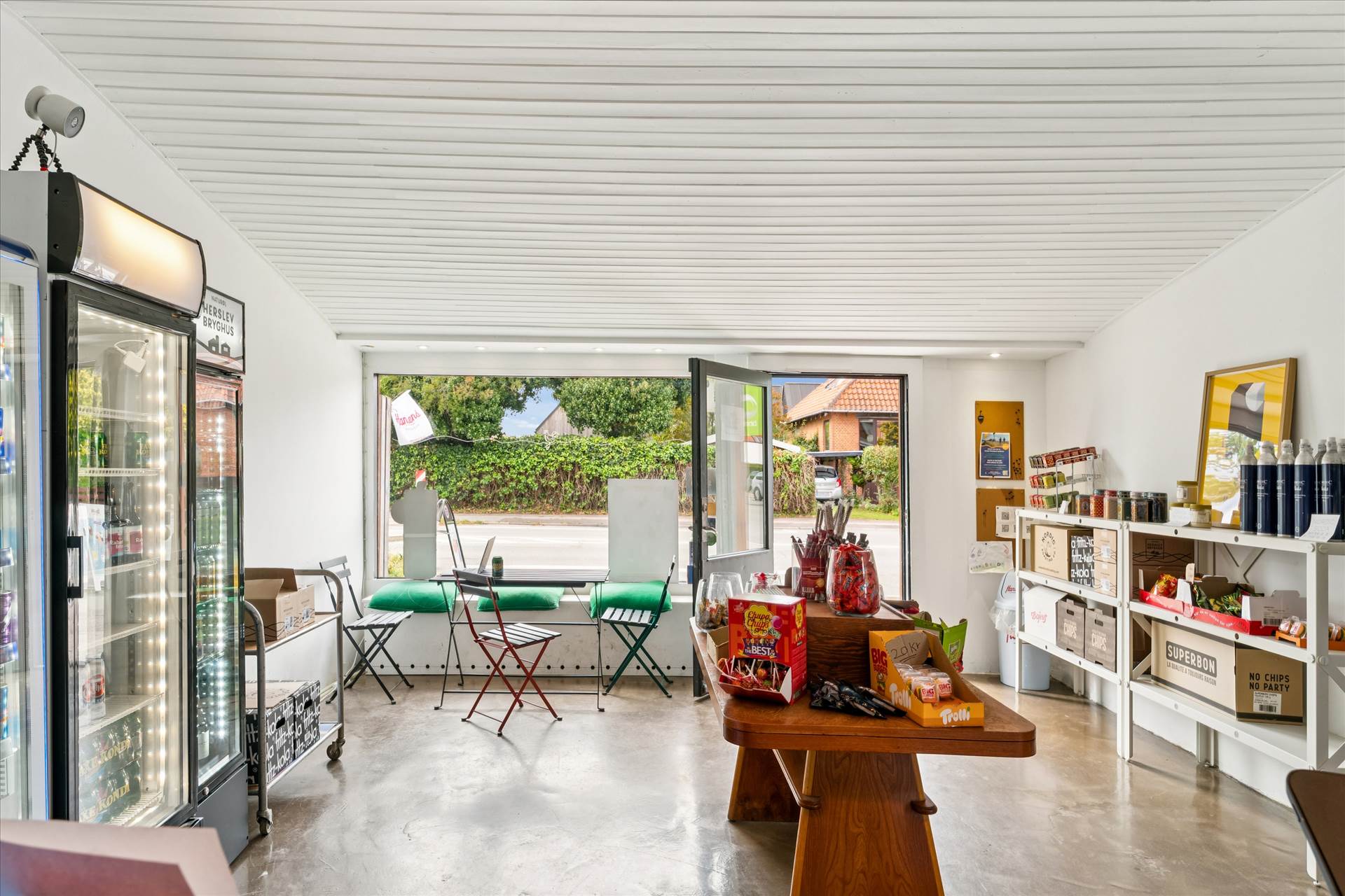 Beliggenheden er særlig fordelagtig, da butikken ligger på vejen ned til stranden.