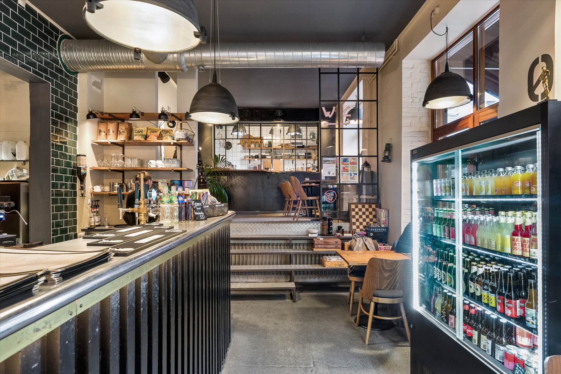 Indretningen understøtter et effektivt workflow, hvor køkken, bar og servering spiller naturligt sammen.