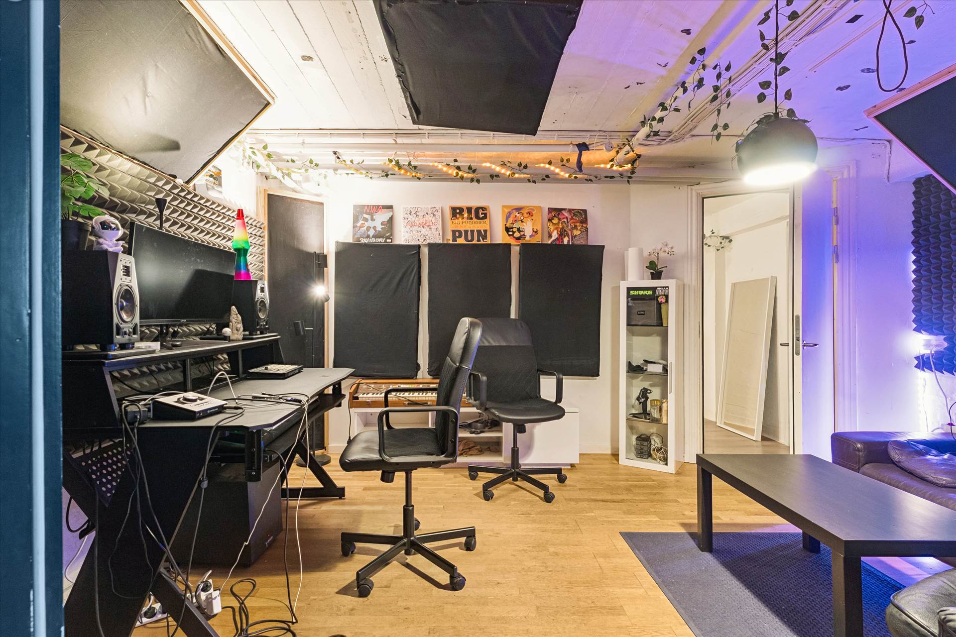 Lejemålet har tidligere været anvendt til kreativ produktion og fremstår med akustiktilpasninger, der giver gode rammer for lydarbejde. De forskellige rum kan udnyttes fleksibelt efter behov, og der er etableret mindre faciliteter som tekøkken og toilet.