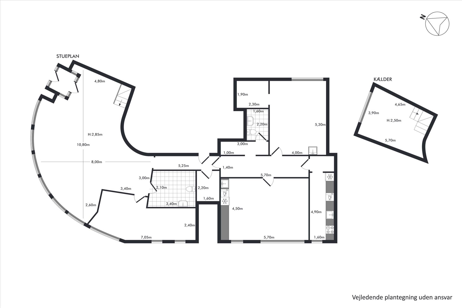 Lejemålet er beliggende lige ved søerne og indeholder 209 m² i stueplan og 22 m² i kælder. I stueplan er der et stort rum med store udstillingsvinduer til gaden, 3 gode kontor-/baglokaler, køkken, 2 toiletter (det ene hcp venligt) samt et arkivrum. I kælder (hvor der er direkte nedgang til) er der regulært rum til arkiv/lager. På det andet hjørne af ejendommen ligger den kendte forretning Marathon