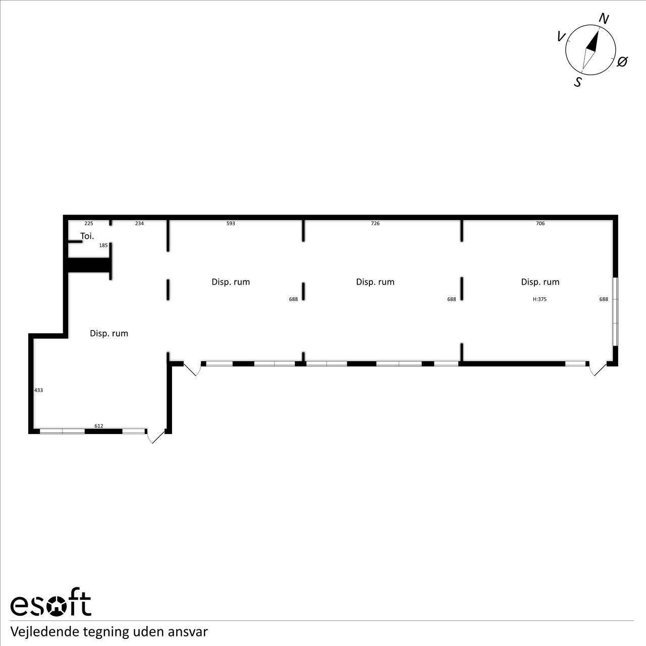 Erhvervslejemålet rummer 222 m². Det er regulært med gode muligheder for udstilling qua de mange store facadevinduer. Her får du et stort salgsareal eller kontor med tekøkken og pænt toilet med bad. Lejemålet er indflytningsklart og overtages som whitebox. Anvendelsesmulighederne er mange inden for detail og liberalt erhverv. Overtagelse kan ske snarest muligt.