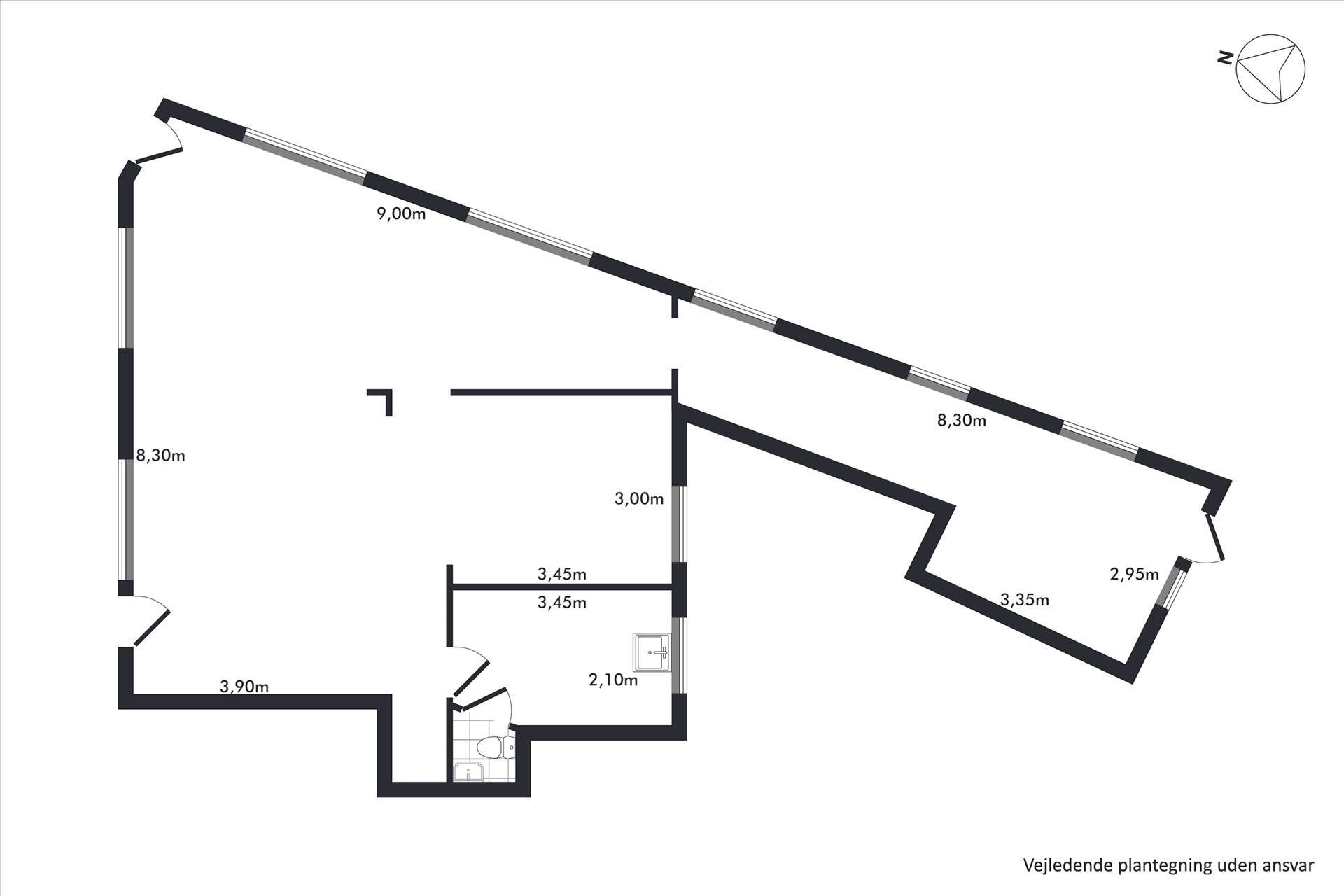 Det samlede butiksareal udgør 106 m², og planløsningen er både fleksibel og funktionel. Lokalet kan nemt tilpasses forskellige typer erhverv – eksempelvis detailhandel, showroom, galleri eller anden publikumsorienteret servicevirksomhed. Bagerst i butikken findes et praktisk baglokale med thekøkken og et lille toilet.