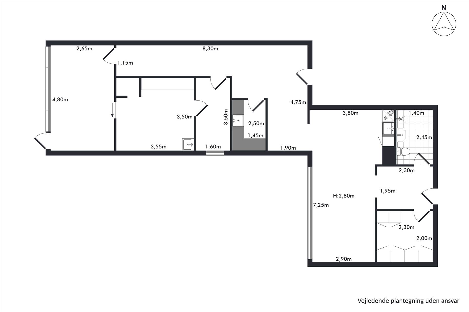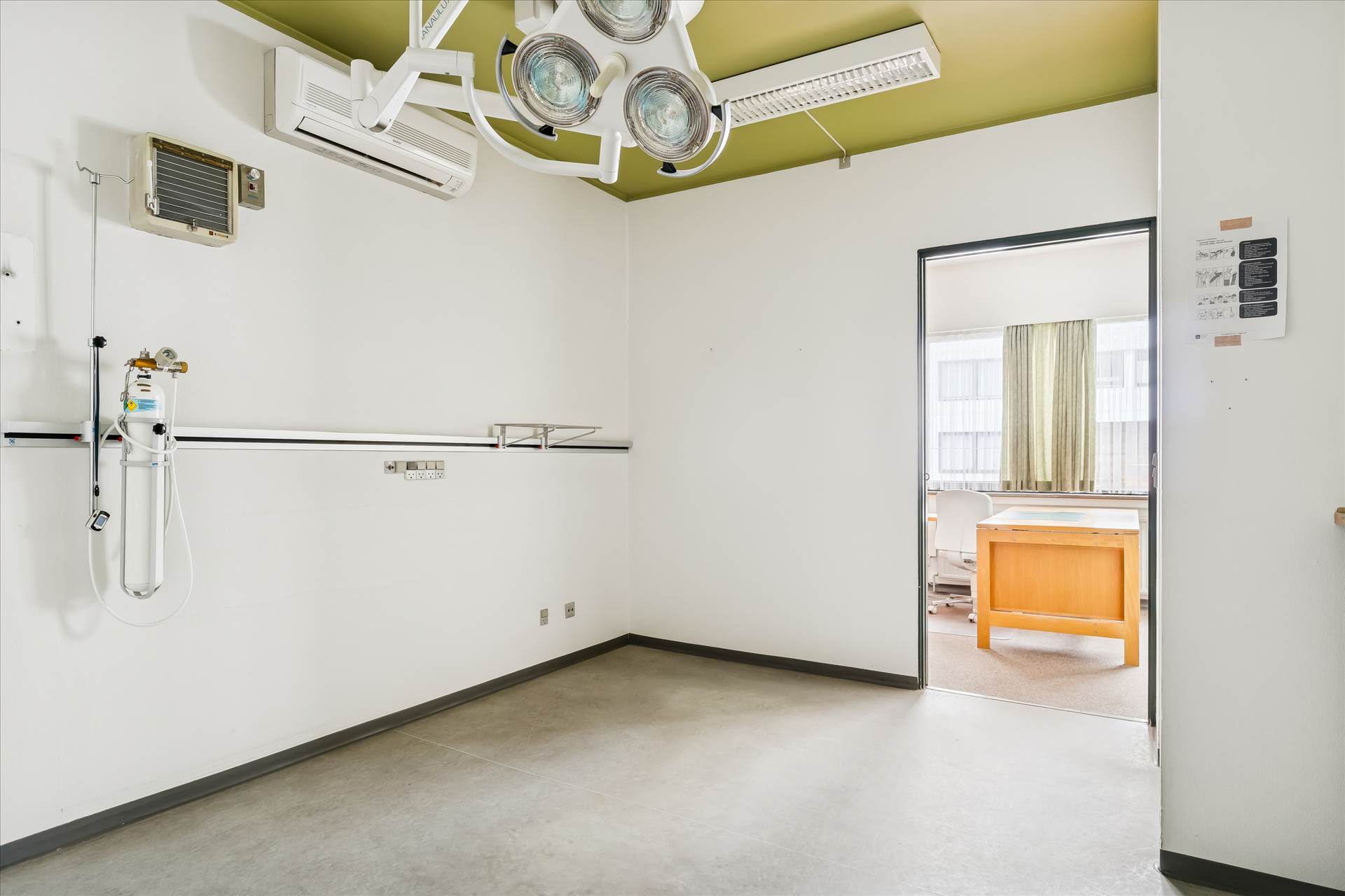 Den ene del indeholder en entré med garderobe, et stort badeværelse samt en indbydende reception med venteområde, som skaber professionelle rammer for modtagelse af klienter og kunder. Den anden del rummer et mindre “laboratorie”, en opvågningsstue, en operationsstue samt et separat kontor. Lejligheden har senest været anvendt til klinik, og indretningen bærer præg heraf, men rummene kan forholdsvist enkelt tilpasses. Der er ligeledes en tilhørende parkeringsplads i parkeringskælderen.